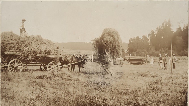 Artikkelikuva: heinäntekoa Pyhäniemen kartanon pelloilla Hollolassa vuonna 1894