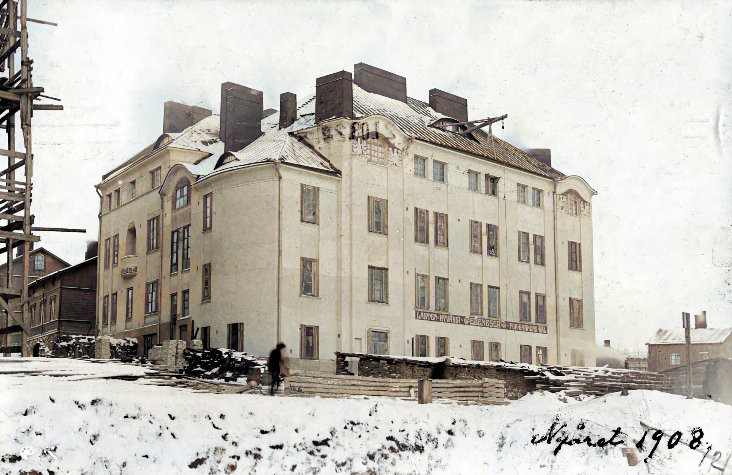 Ebeneser-talo, Helsinginkatu 7, valmistumisvuosi 1908. Flickr / Ebeneser-säätiö. Kuva on väritetty In Colorilla